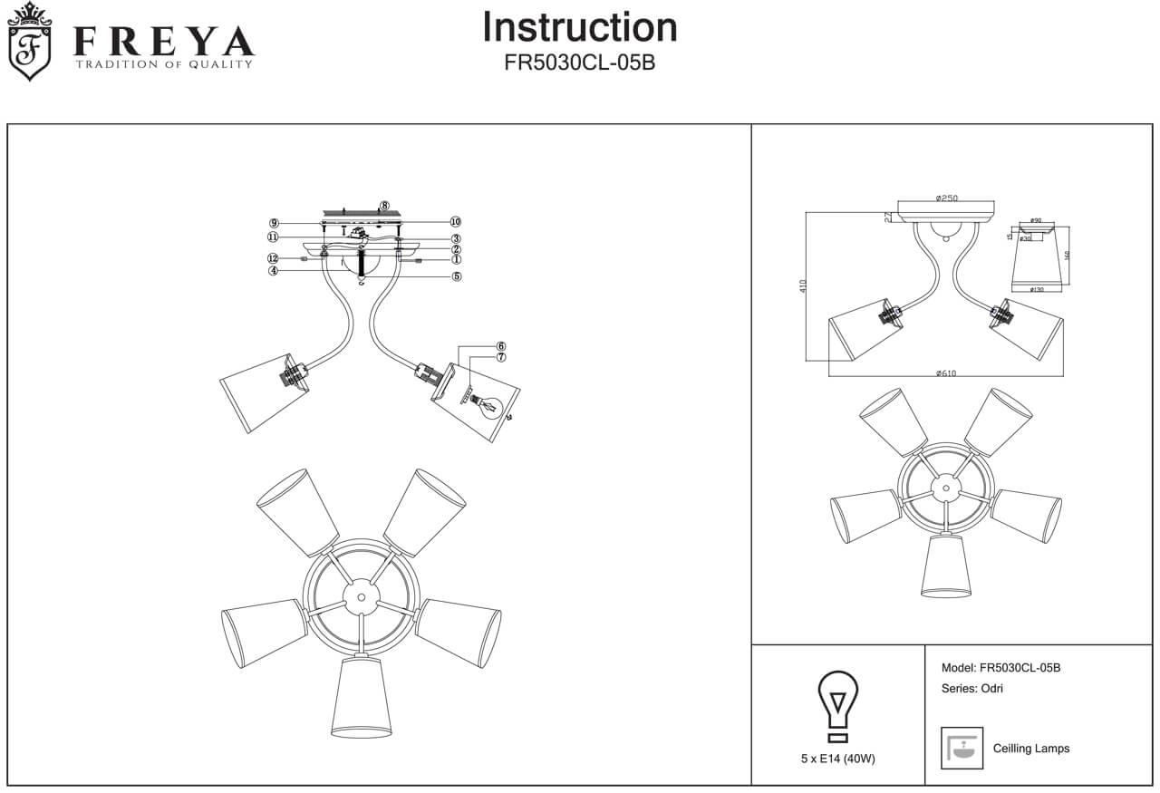 Качественное освещение комнаты является одним из самых важных составляющих комфорта и уюта. Потолочная люстра Freya Odri FR5030CL-05B добавит интерьеру тепла и светлого настроения. Потолочная люстра Freya Odri FR5030CL-05B - это правильный выбор.
